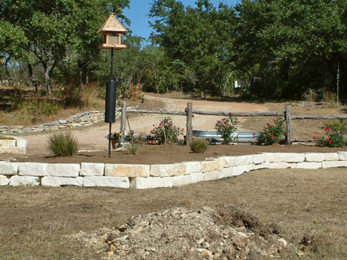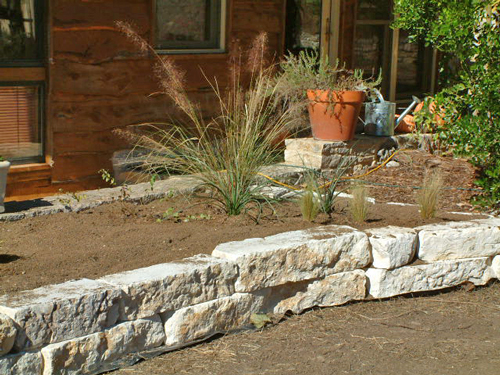 In the south courtyard bed I put a Texas Sotol in the east area, a collection of grasses; Hamelin Fountain Grass, Gulf Coast Muhly, Dwarf White Fountain Grass, and Little Bunny Fountain Grass, along with two Red Yuccas in the center area, and a Texas Redbud tree at the west end of the bed.