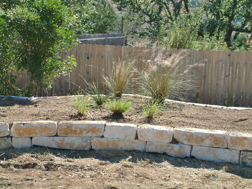 I placed a collection of grasses, a couple of Red Yuccas, and a purple Trailing Lantana in the north end of the west bed.