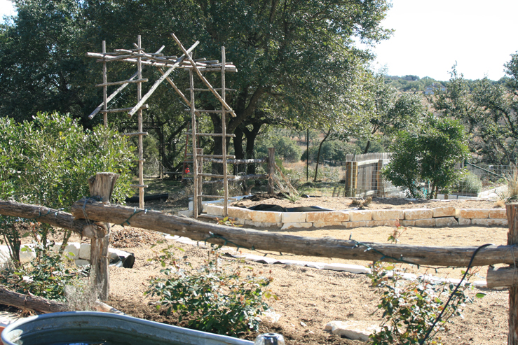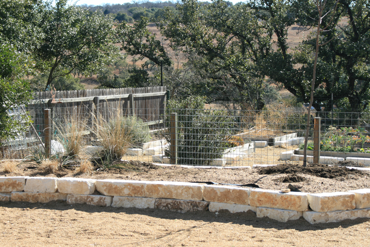 There haven’t been too many big changes in the front yard since the last pictures that I took, except that the views between the backyard raised beds, the valley, and the front yard have been opened up by removing the cedar fence. We put up a temporary livestock fence for now just to get familiar with how the space was going feel when we put in the new rock retaining wall and black steel fence which will define the transition between the front yard and the back yard. We will also be replacing the cedar retaining walls around the back yard raised beds with the same limestone rocks we used for the front yard raised beds which should tie the appearances of the two areas together.