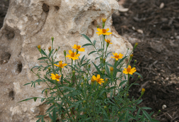I have been wanting some copper canyon daisies for years, and I finally got some. I planted three around a big boulder in the front courtyard, and they are all in bloom now.