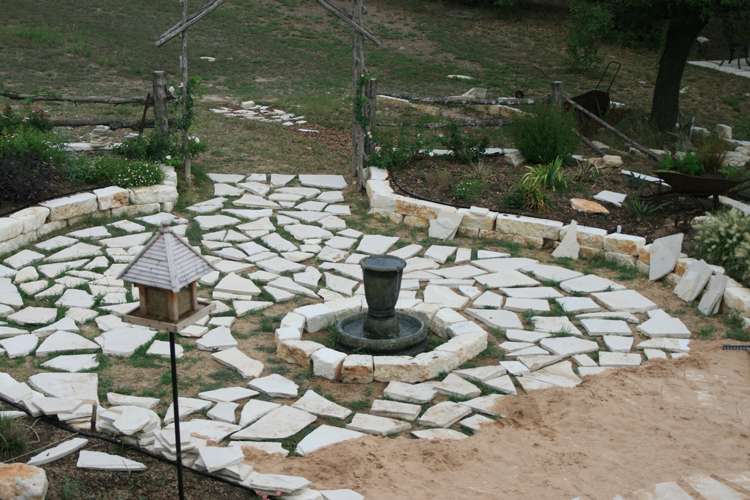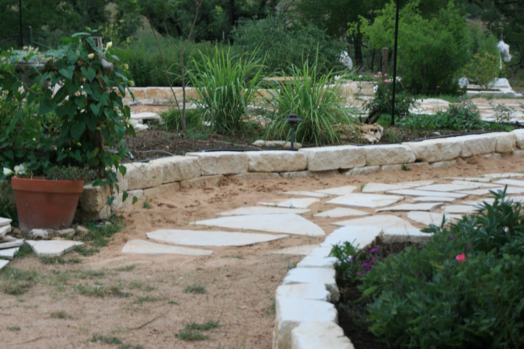 The rock pathway draws attention to the entrance to the courtyard and leads one into the courtyard area. Another path will branch off the south side of the courtyard and connect the courtyard to the vegetable garden, and then continue to the small patio area in the grove adjacent to the vegetable garden.