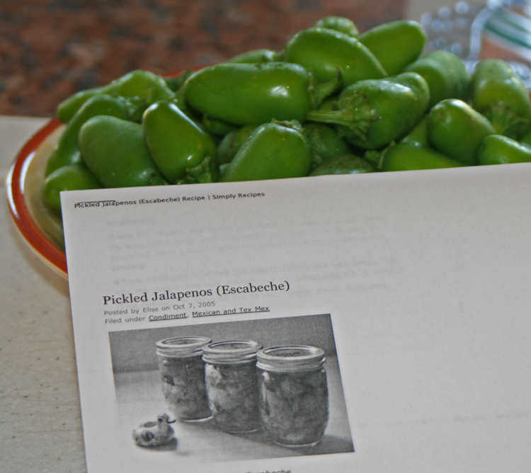 I think I have enough jalapenos to pickle a few pints this weekend. I found what looks like a good recipe for pickled jalapenos, Escabeche, on www.elise.com. I’ll provide an update after I have had a chance to try it and let you know how it tastes.