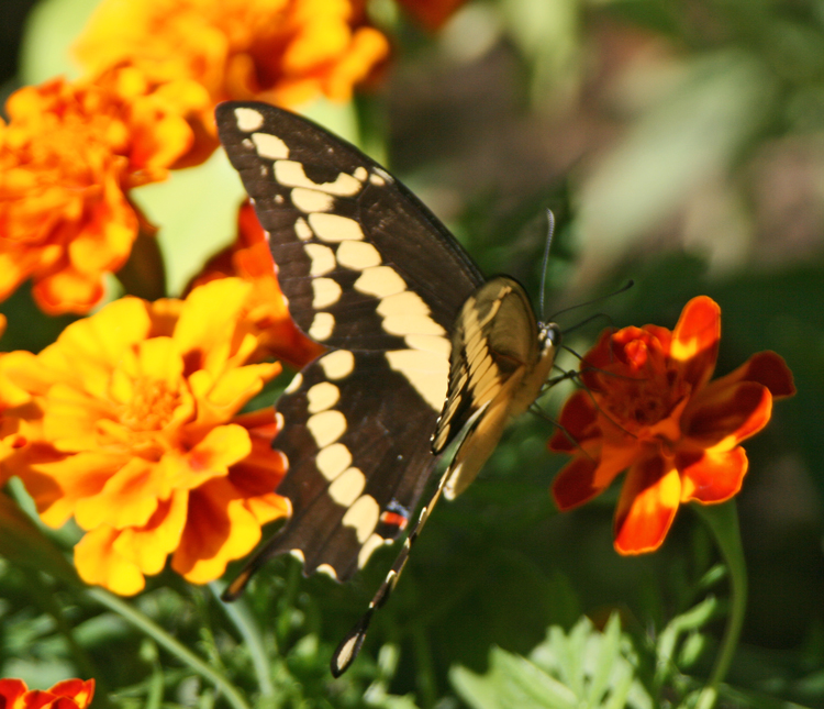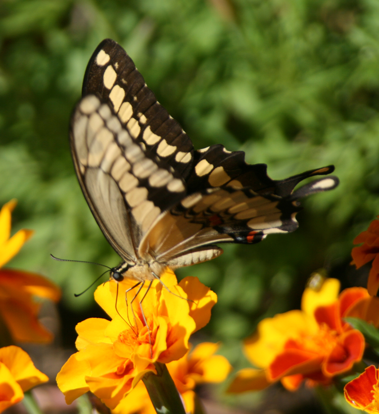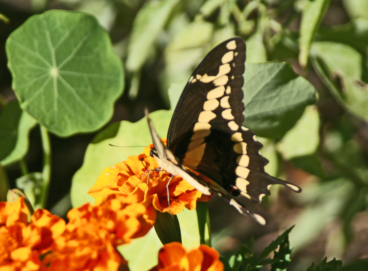 This giant swallowtail butterfly came to visit yesterday. It is one of the largest of the swallowtail butterflies, and is quite beautiful.