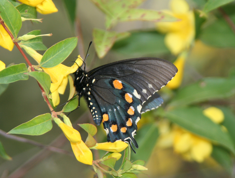The first flowers of spring are starting their show here now, even though our mornings are still occasionally below freezing. The Carolina Jessamines are covered in lemon yellow flowers that never fail to attract the first butterflies of spring. These pipevine swallowtails are here every day in force, providing me with a beautiful and lively view from my office window.