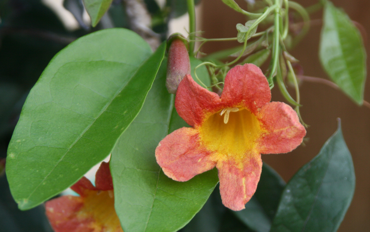 After seeing Diana’s post with the pictures of her great looking cross-vine I decided that was the plant I wanted growing on the trellis. We got three Tangerine Beauty cross-vines which should easily cover the entire trellis in a few years.