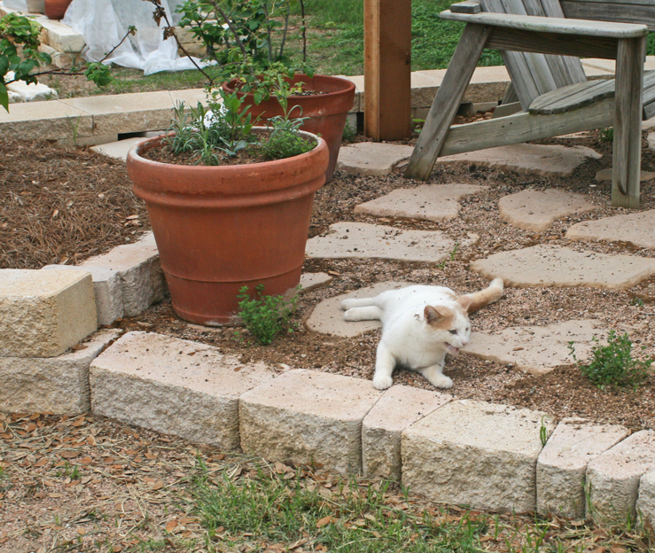 The south courtyard bed is filling in nicely. It will be a couple more years before it is fully mature, but there is already lots of interest in this bed. The cats love hiding in the bunny fountain grass.