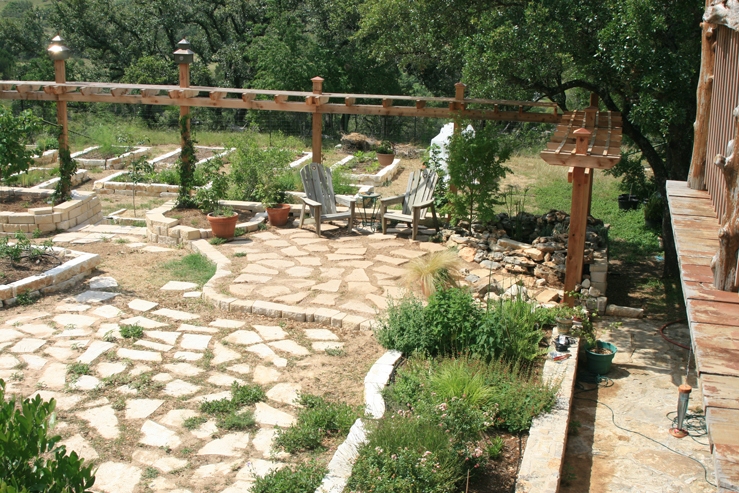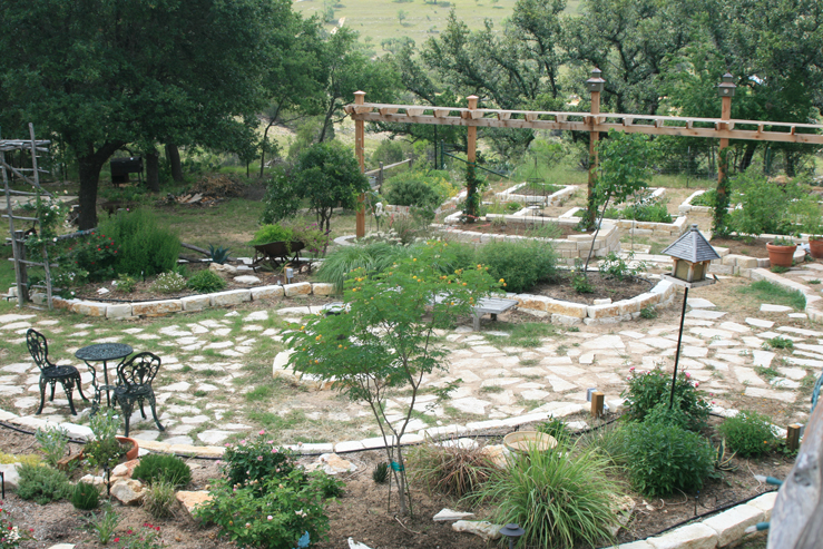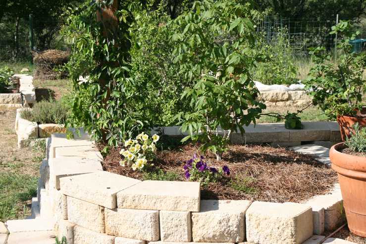 Some of the other new plant installations include caldiums, impatiens, and begonias in the shady front porch bed, begonias, potato vine, and impatiens in the shady backyard zen garden, and chandler strawberries.