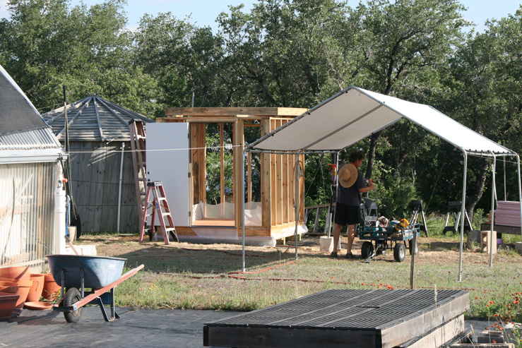 One of the obstacles to getting our farm stand started has been a scarcity of cold storage space to store harvested crops until it is time to fill shares or take them to market. I am happy to report that this obstacle will be removed very soon! Ron has been building a small cold storage unit for us that will provide plenty of space for keeping our veggies fresh and cool. It will probably be a great place to go cool off on hot days also.