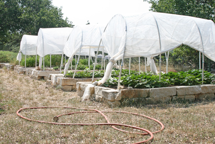 Our best hope for extending our summer season is to irrigate more frequently and to cover our crops with lightweight row cover. Since we covered our crops a couple of weeks ago, and modified our watering schedule we have seen quite a bit of improvement in most of our crops. Of course some of the crops are simply at the end of their life and will be removed soon to make room for fall crops, but others, such as the peppers, will rebound in the fall if we can keep them healthy until then. And still others, like the okra should continue to produce for most of the summer if we keep them irrigated and covered.