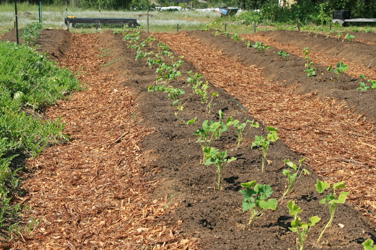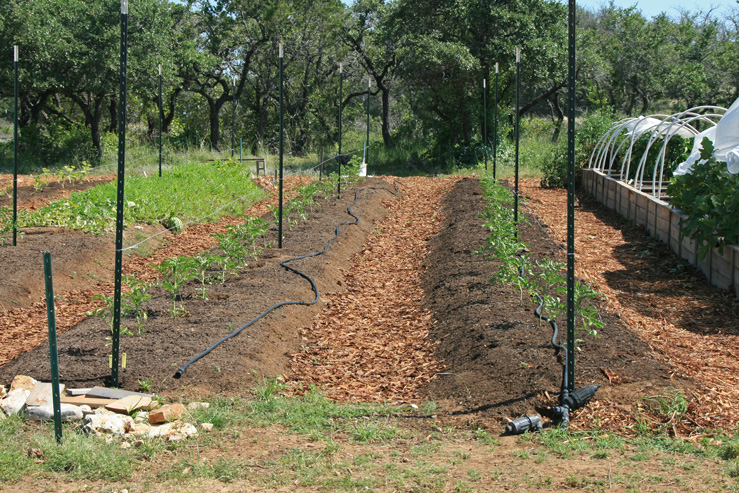 We are right in the middle of the dog days of summer which the hot and dry conditions of late reflect. This is a tricky time for Central Texas vegetable farmers because early fall crops such as tomatoes and winter squash must be planted now in order to produce before first frost, but the 100+ degree days are really hard on young plants so it can be a real challenge to keep these crops healthy until the weather moderates sometime in September. Providing shade during the hottest part of the day using hoop structures is a good solution, however, we just completed our new ‘one west’ field and have not had time to build hoop structures so we will be using mulch to try to keep the roots cool and damp.