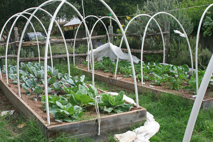 We have brussels sprouts, potatoes, cabbage, kale, arugula, collards and cauliflower growing in the market garden area.