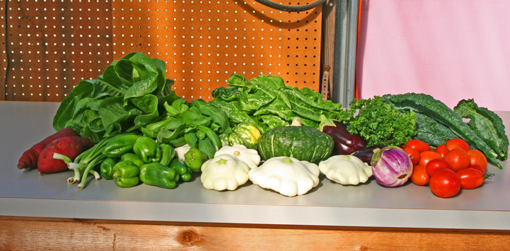 Our current fall farm shares contain tomatoes, bell peppers, kale, swiss chard, lettuce, green onions, arugula, pie pumpkins, buttercup squash, white scalloped squash, acorn squash, sweet potatoes, basil and parsley. Upcoming attractions include broccoli, beets, carrots, parsnips, leeks, potatoes, cauliflower, brussels sprouts and Asian greens!
